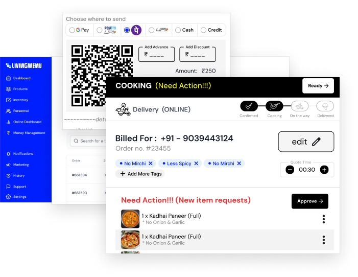 Enhance your restaurant operations with LivingMenu's comprehensive software, tailored for QSRs, fine dining, canteens, bars, cafes, and bakeries. Easily manage tables, orders, inventory, and marketing from a single platform.